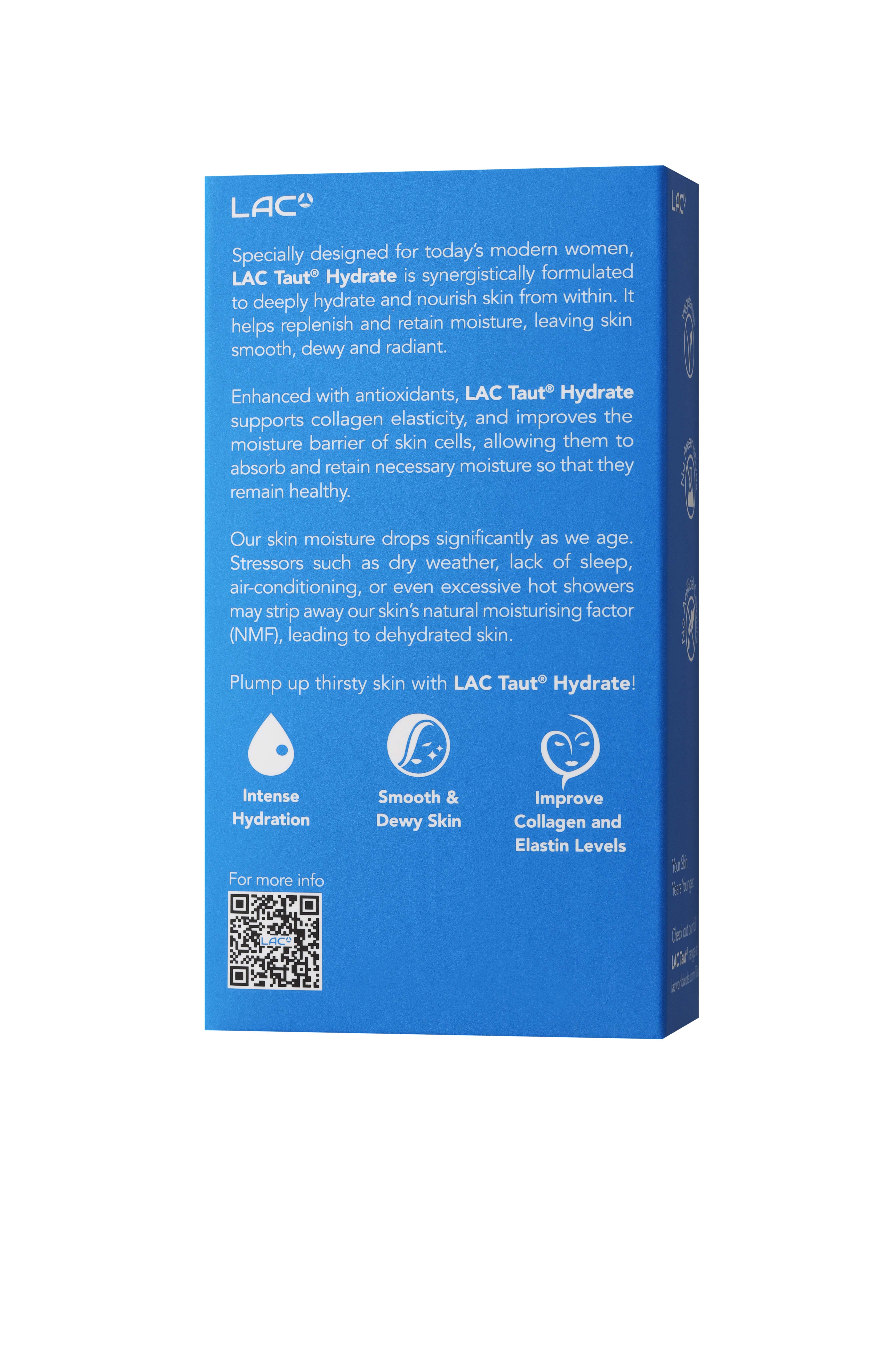 VIÊN UỐNG BỔ SUNG CHẤT DƯỠNG ẨM LAC TAUT HYDRATE (60 VIÊN) chứa dưỡng chất dưỡng ẩm cho da - Hyaluronic Acid (chất giữ ẩm) và chiết xuất hạt nho (chất chống oxy hóa) cung cấp dưỡng chất dưỡng ẩm giúp tăng cường khả năng phòng vệ chống lại tác động làm khô da cũng căng thẳng cho da do tiếp xúc với nắng nóng và máy lạnh. Giữ gìn kết cấu làn da tươi trẻ