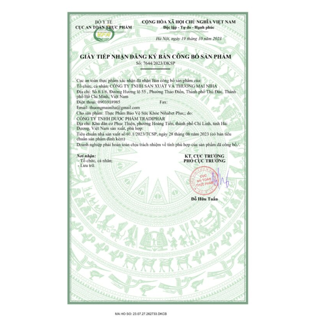 NIHABET PLUS là sản phẩm hỗ trợ cải thiện chỉ số đường huyết dành cho người lớn, chứa các thành phần tự nhiên lành tính và hiệu nghiệm như cao khô Dây thìa canh, Khổ qua, Giảo cổ lam, bột Hoài sơn, Alpha lipoic acid và các loại vitamin như B1, B6. Sản phẩm được thiết kế để hỗ trợ ổn định đường huyết và cải thiện sức khỏe cho những người có chỉ số đường huyết cao.