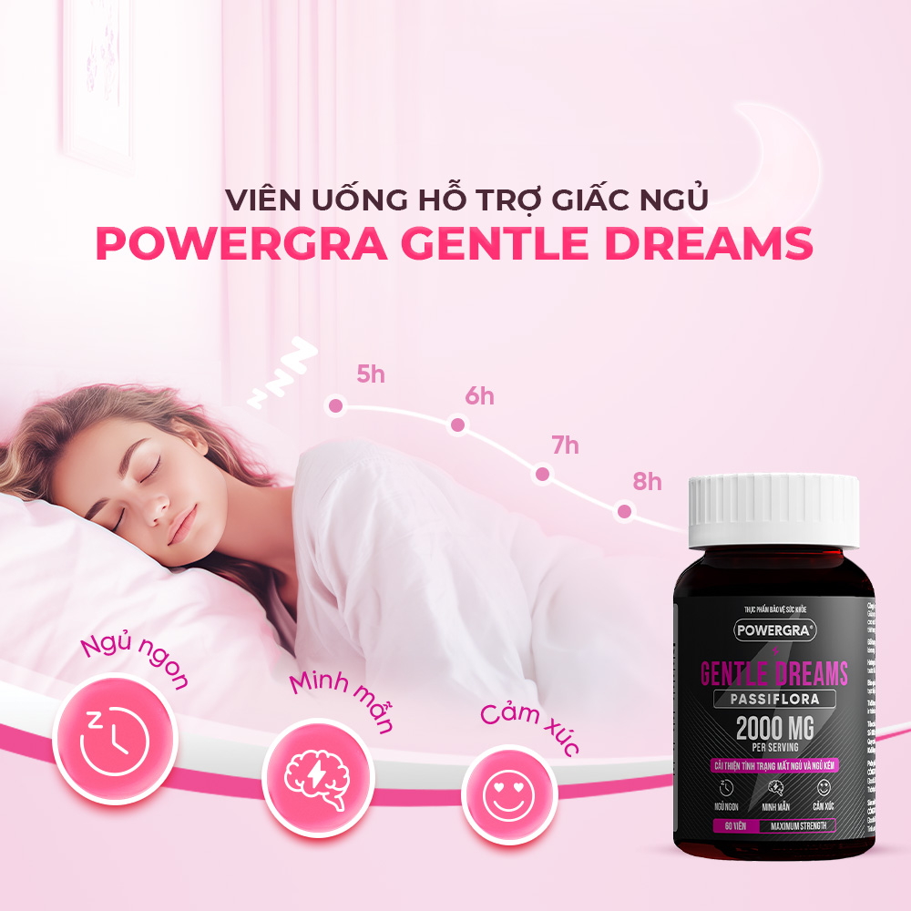 - Thông tin: Viên uống cải thiện tình trạng mất ngủ và ngủ kém Powergra Gentle Dreams là giải pháp từ thiên nhiên, dành riêng cho những ai đang chật vật với giấc ngủ chập