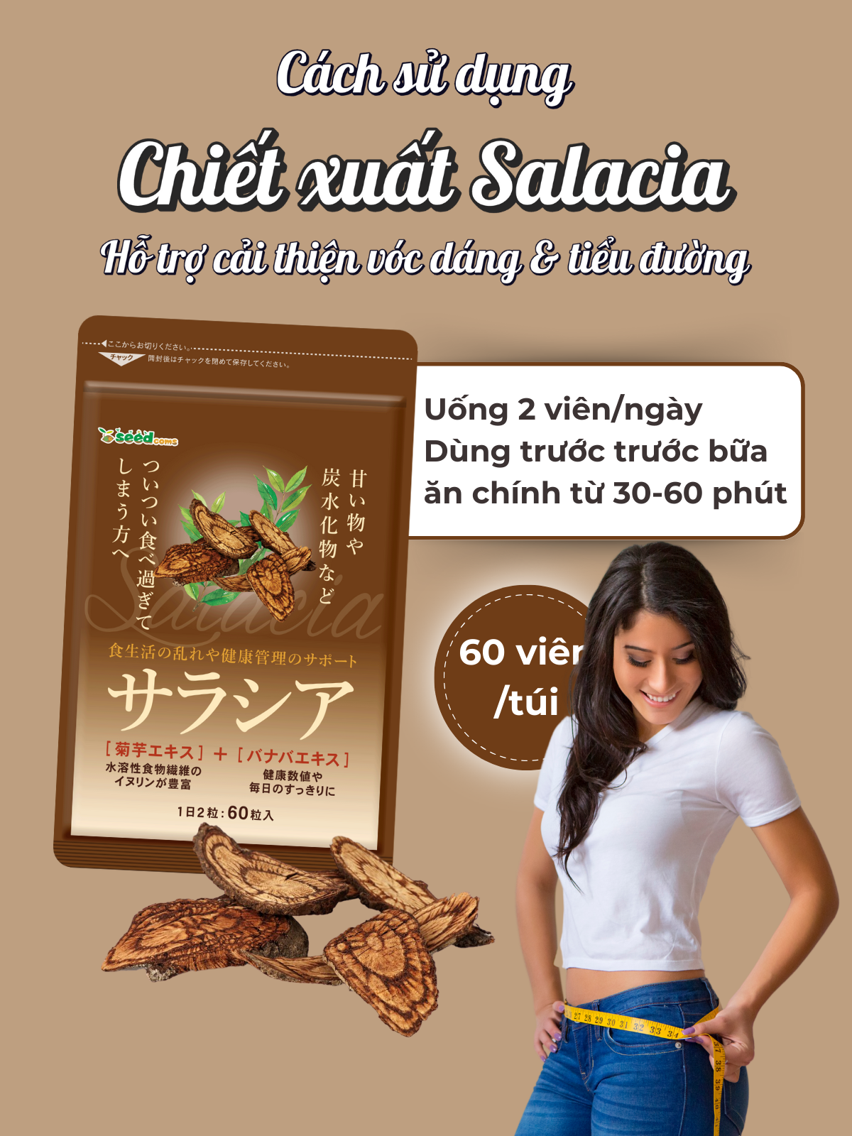 ✨Viên Uống Chiết Xuất Salacia Hỗ Trợ Cải Thiện Vóc Dáng,Tiểu Đường Seedcoms Nhật Bản