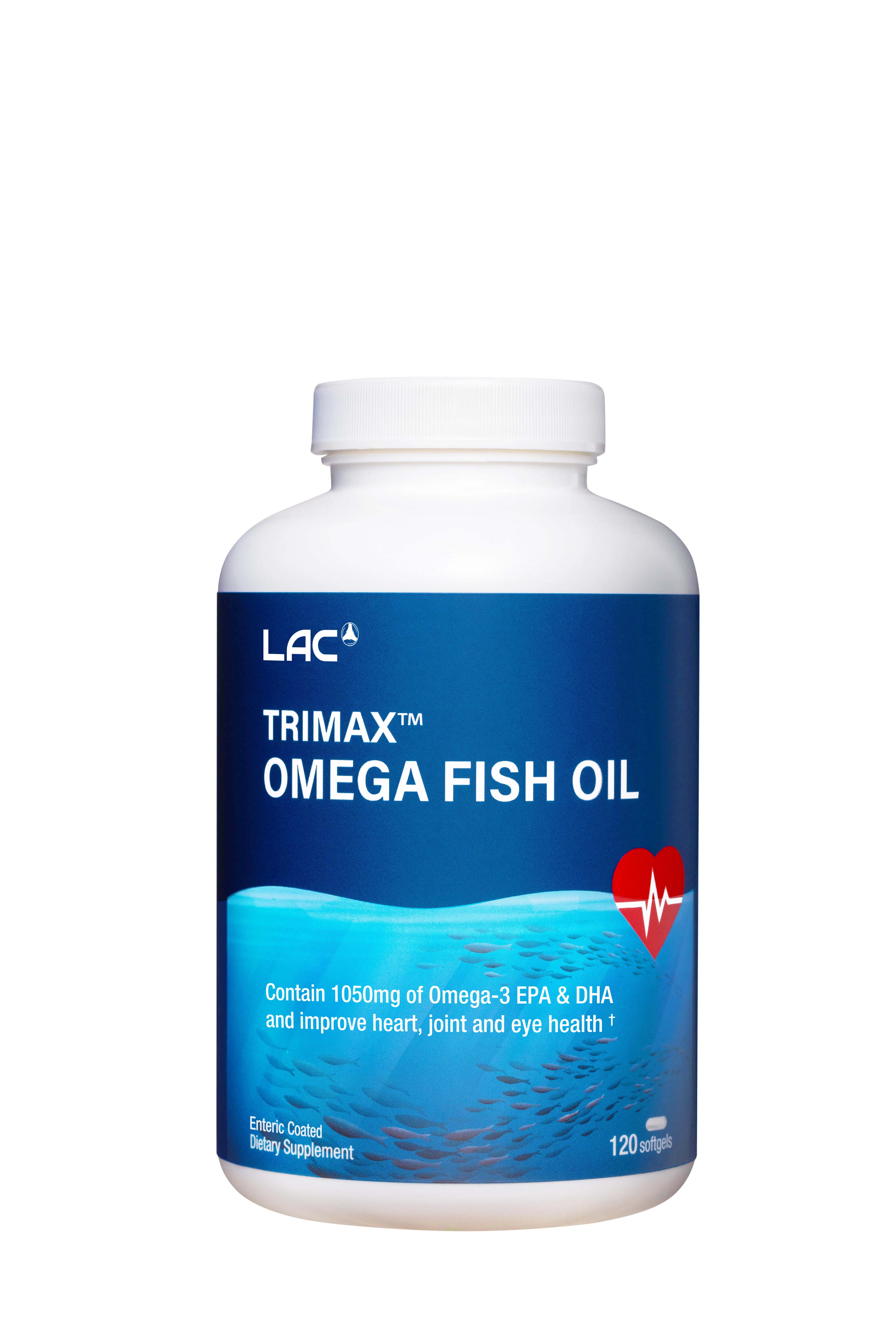 VIÊN UỐNG DẦU CÁ BỔ SUNG OMEGA HỖ TRỢ TIM MẠCH LAC TRIMAX OMEGA FISH OIL + COQ-10 (60 VIÊN) chứa hàm lượng axit béo Omega-3 gấp 3 lần so với dầu cá thông thường