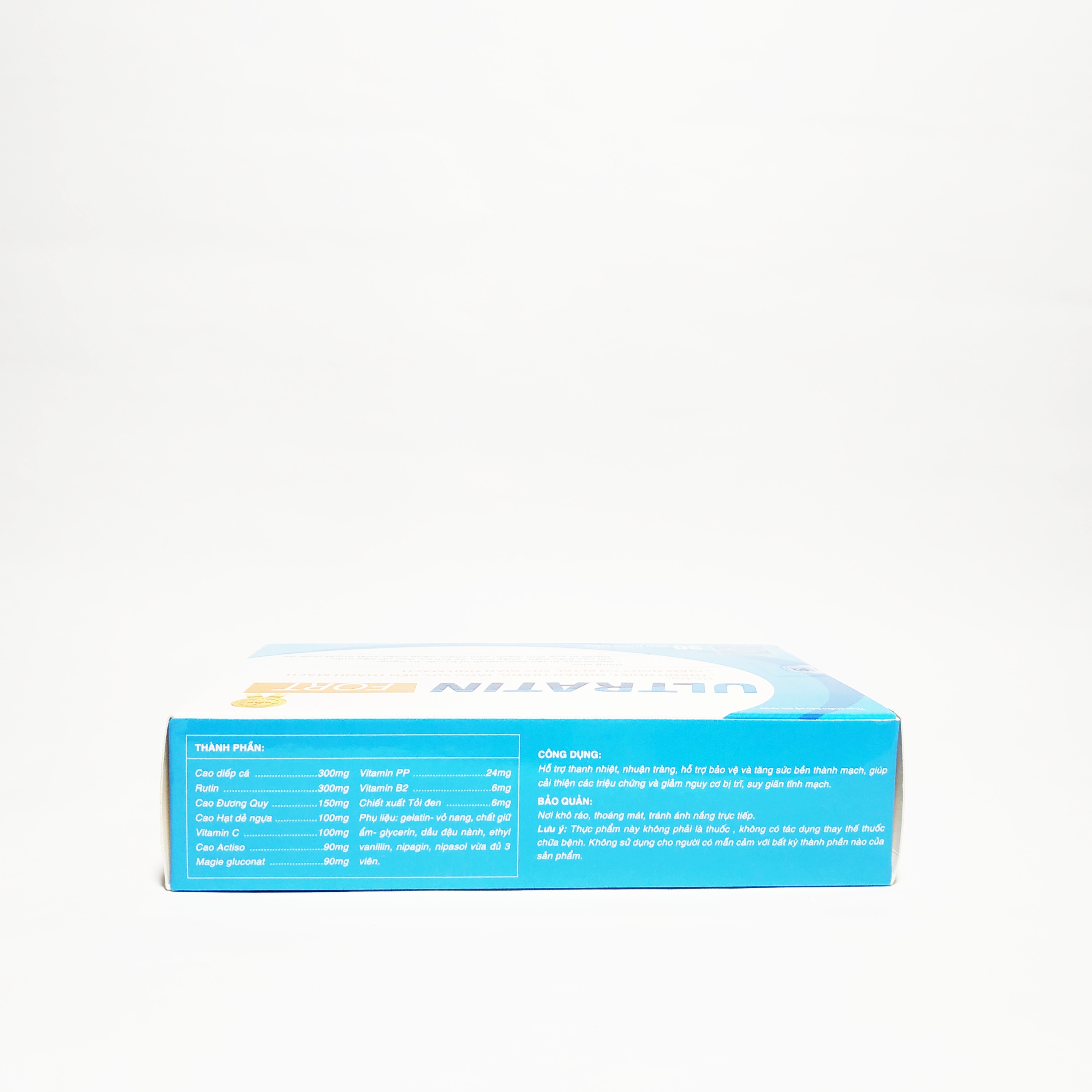 THÀNH PHẦN: R 100mg Cao Đương 150mg Cao Diếp cá .300mg Cao A Cao hạt dẻ ngựa chuẩn… 50mg               Nano C .10mg Vitamin C Vitamin PP .30mg Vitamin B Vitamin E M Tỏi đ   CÔNG DỤNG: Giúp tăng tính bền thành mạch, tăng khả năng dẻo dai, đàn hồi cho hệ thống mạch máu.     Cải thiện các triệu chứng của trĩ : chảy máu, đau rát, ngứa  và các biến chứng xuất huyết của bệnh trĩ, sa trực tràng, sa búi trĩ.                                                                                                                                                   ĐỐI TƯỢNG SỬ DỤNG: Người bị nóng trong gây nhiệt miệng, táo bón, viêm chân răng, chảy máu chân răng, chảy máu cam, nổi mẩn. Người bị táo bón, nguy cơ mắc bệnh trĩ, chảy máu do trĩ, đau rát hậu  môn Người đang bị sốt xuất huyết, hoặc xuất huyết dưới da, niêm mạc Người bị suy giãn tĩnh mạch    CÁCH DÙNG: Người lớn: uốn 2 viên/lần  x 2 lần/ngày Trẻ em trên 3 tuổi: uống 1 viên/lần x 2 lần/ngày Người bị trĩ cấp, mãn tính và phòng ngừa tai biến về mạch nên dùng một đợt liên tục từ 2 – 3 tháng   QUY CÁCH ĐÓNG GÓI: Hộp 3 vỉ x 10 viên Phân phối bởi: CÔNG TY TNHH TM DP CHÂU ÂU