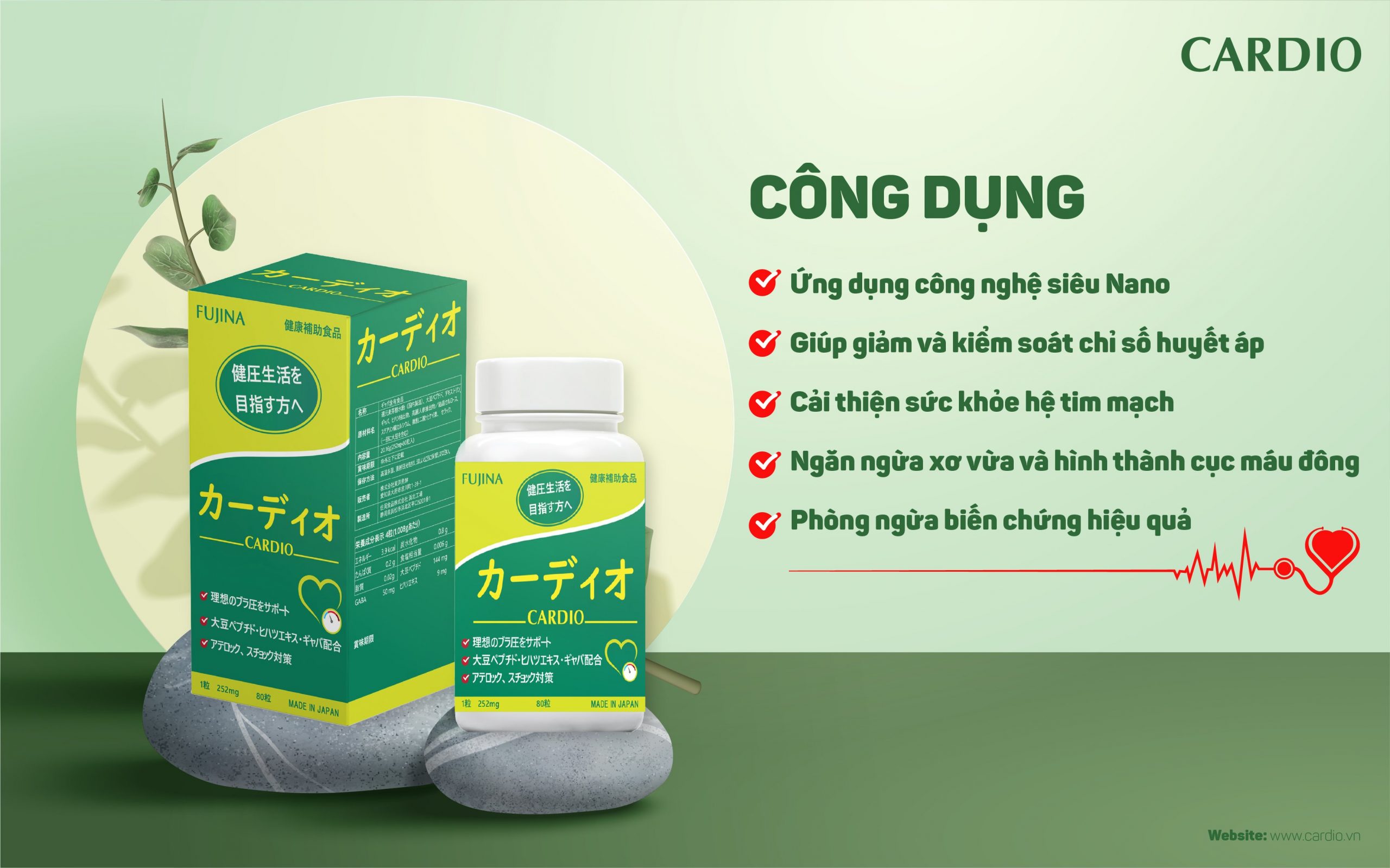 Viên Uống Hỗ Trợ Ổn Định Huyết Áp Cardio Fujina 80 Viên Nhật Bản, Giảm Nguy Cơ Cao Huyết Áp