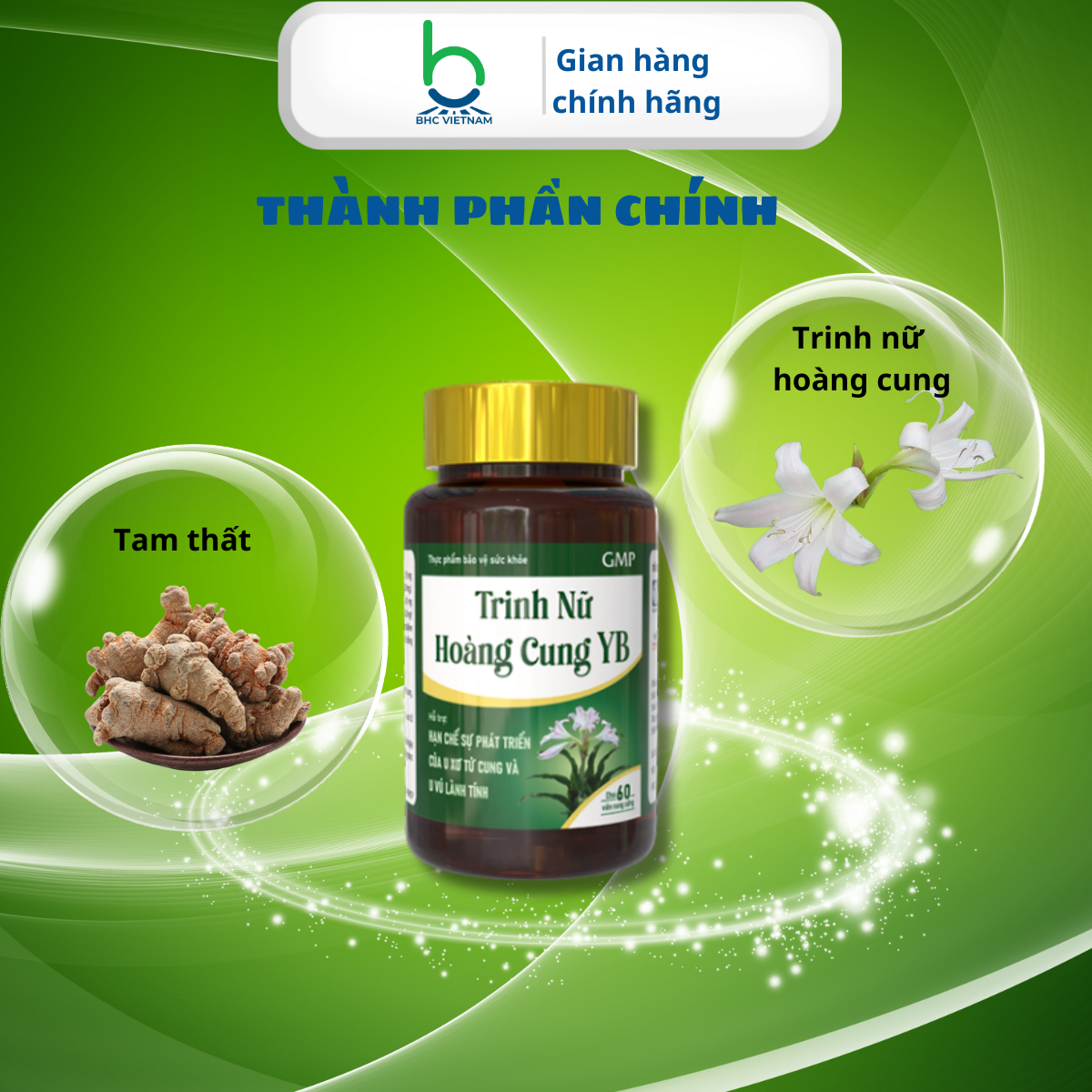 ✨Viên Uống TRINH NỮ HOÀNG CUNG YB Hỗ Trợ Phụ Nữ Bị U Xơ Tử Cung và U Vú Lành Tính - Lọ 60 viên