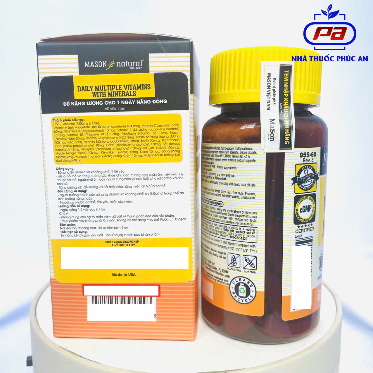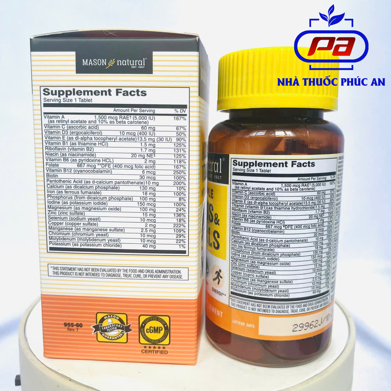 ✨Viên vitamin và khoáng hữu cơ Mason Natural Daily Multiple Vitamins With Minerals 60 viên