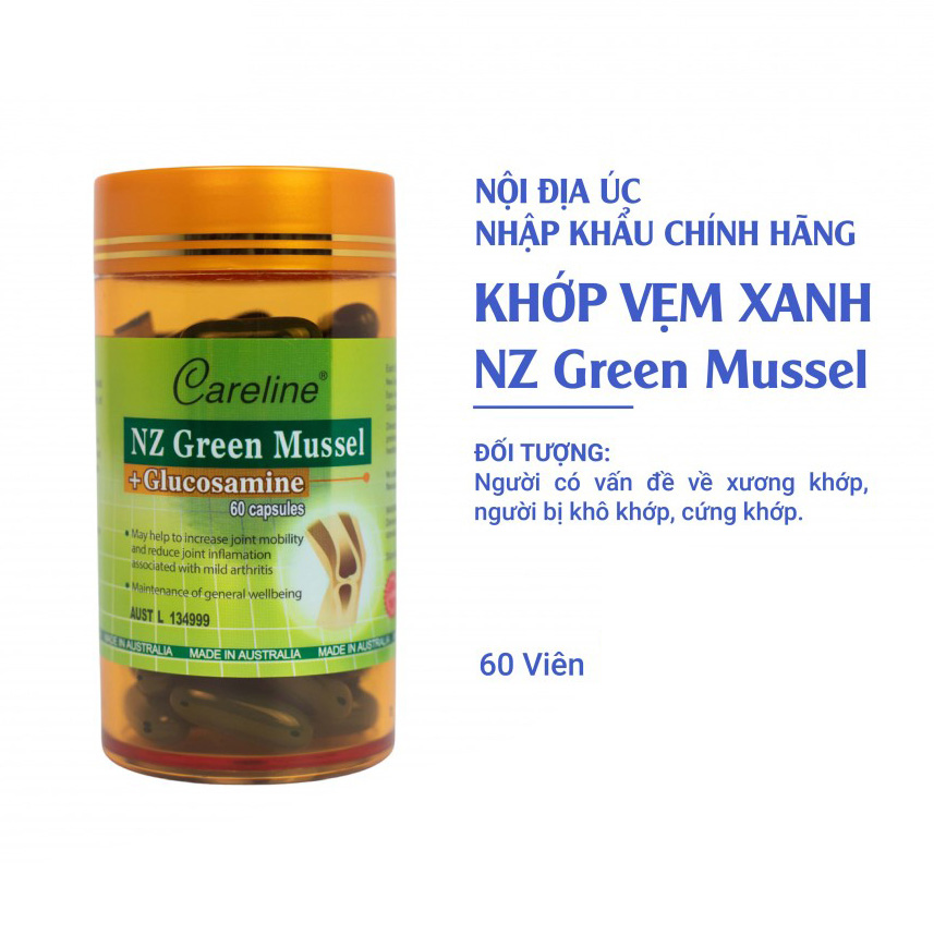 ✨Viên Khớp Vẹm Xanh CareLine NZ Green Mussel Glucosamine Dành Cho Người Thoái Hoá Khớp, Khô Cứng Khớp 60 Viên/Hộp
