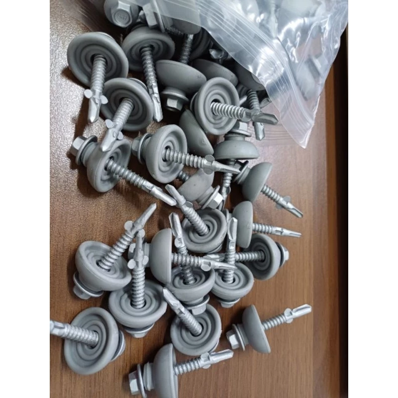 Mua tại TiktokVít chuyên dụng, dành cho lắp đặt tấm poly. Mô tả: Vít được làm từ thép carbon mạ kẽm và nắp chụp cao su EPDM. Thiết kế của vít rất đặc biệt với 2 cánh thép có thể tạo lỗ rộng 10mm trên tấm poly nhưng sẽ gãy để bám chắc vào khung thép. Kích thước: