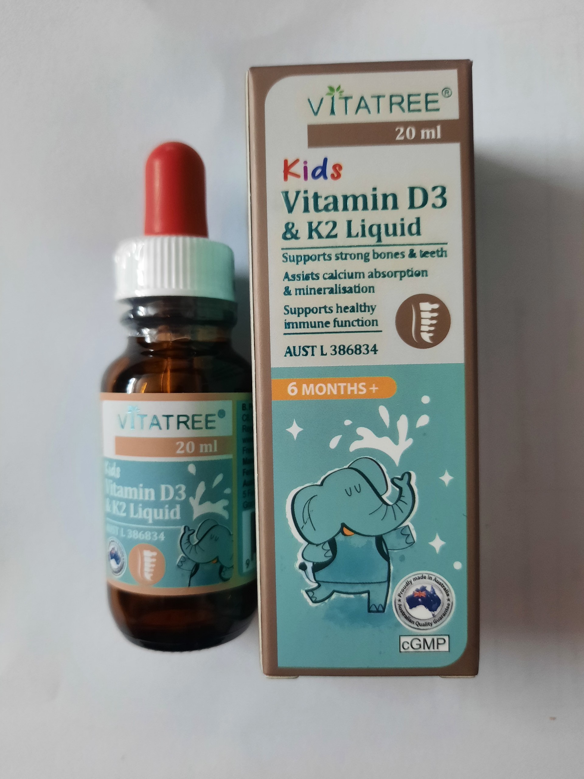 Cả hai loại vitamin D3 và K2 đều hoạt động hiệu quả hơn khi có mặt loại kia. Cùng với nhau, Vitatree Kids Vitamin D3 & K2 Liquid tối đa hóa lợi ích của canxi đối với sự phát triển của xương và tăng cường hệ thống miễn dịch của trẻ.