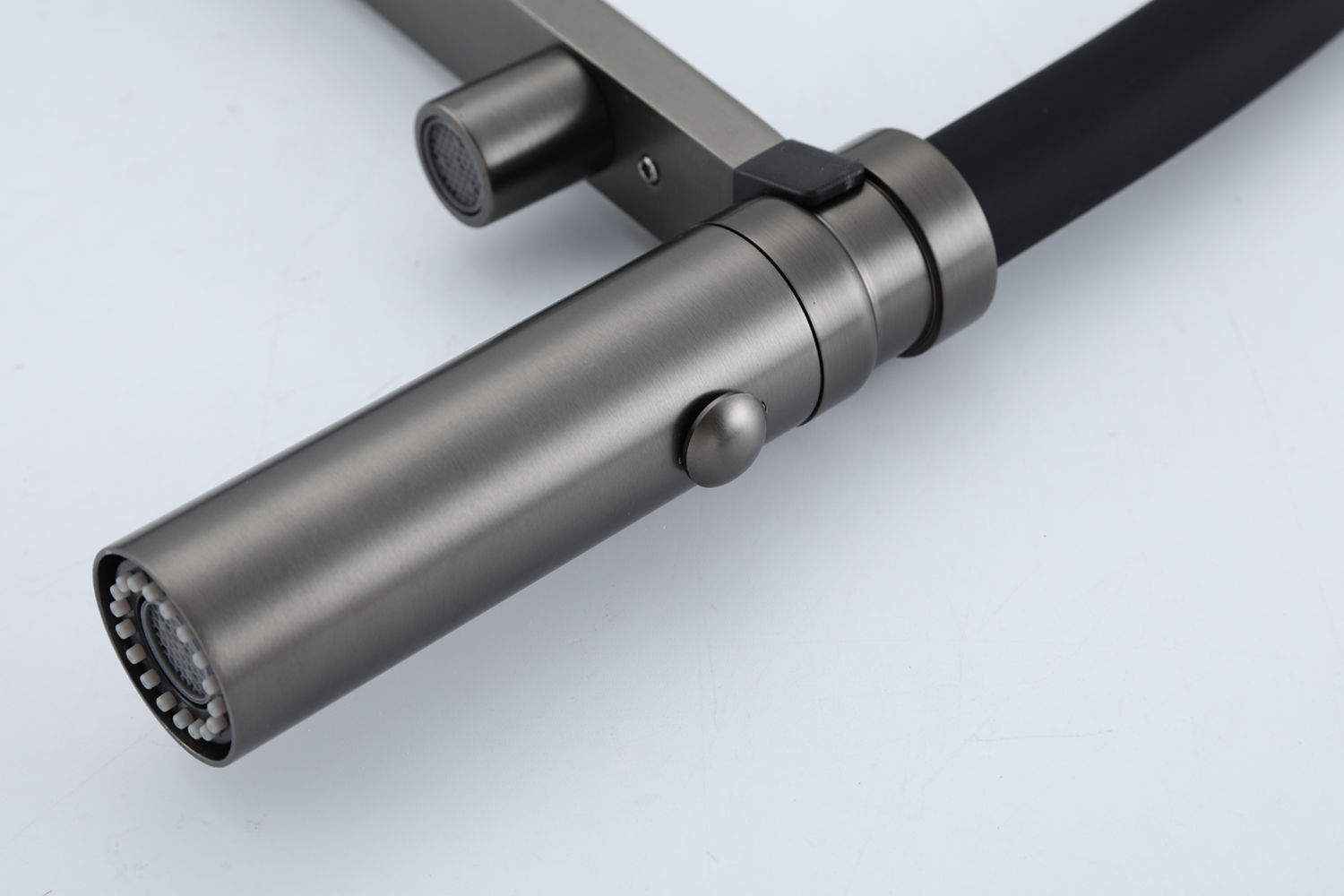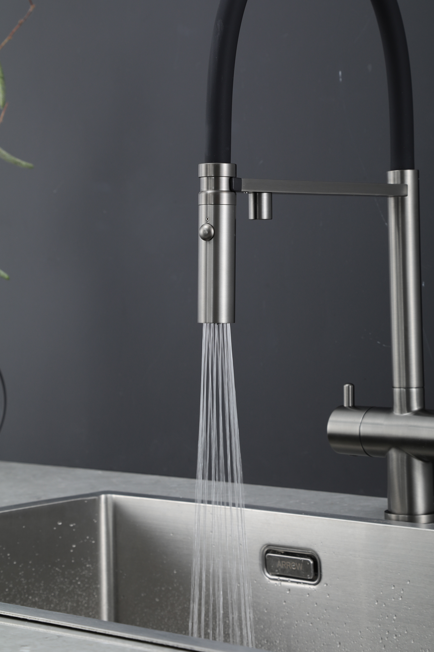 Mã sản phẩm: Artan Grey – Hình dáng: Vòi thiết kế bo tròn, đầu vòi ngang. Tay vòi ngang – Chức năng: Nóng lạnh + Rút dây + 2 chức năng Sprayer (Phun hoa sen,