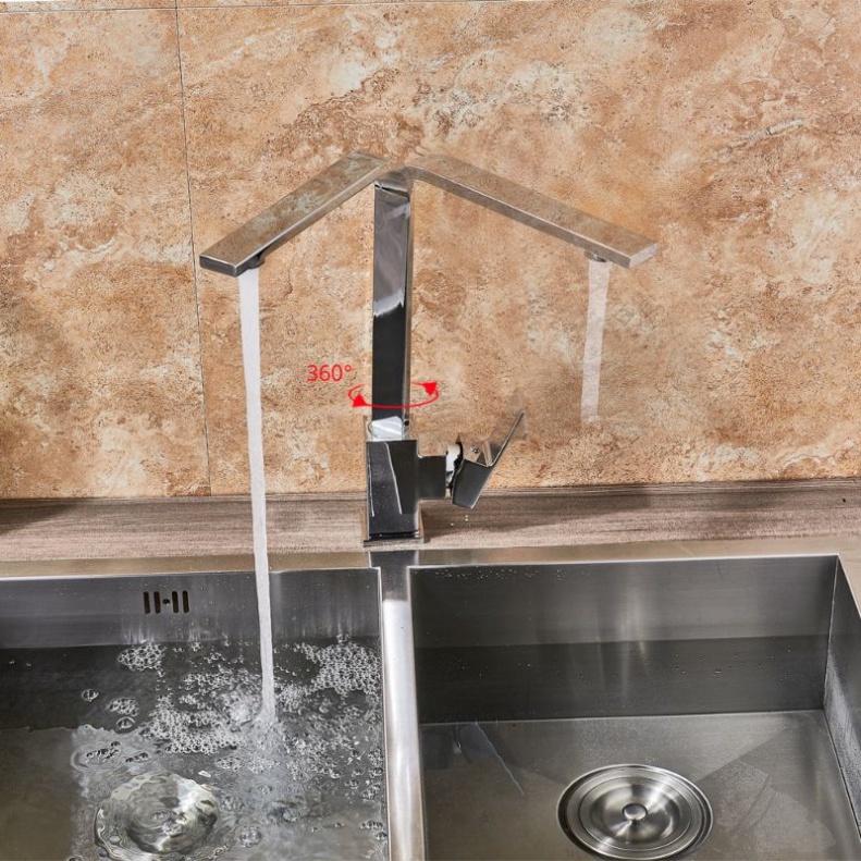 Thiết kế sang trọng, hiện đại Chất liệu inox 304 chống bám bẩn đảm bảo an toàn vệ sinh cho nguồn nước. Đầu vòi xả có thể xoay 360 độ Đầu vòi được thiết kế