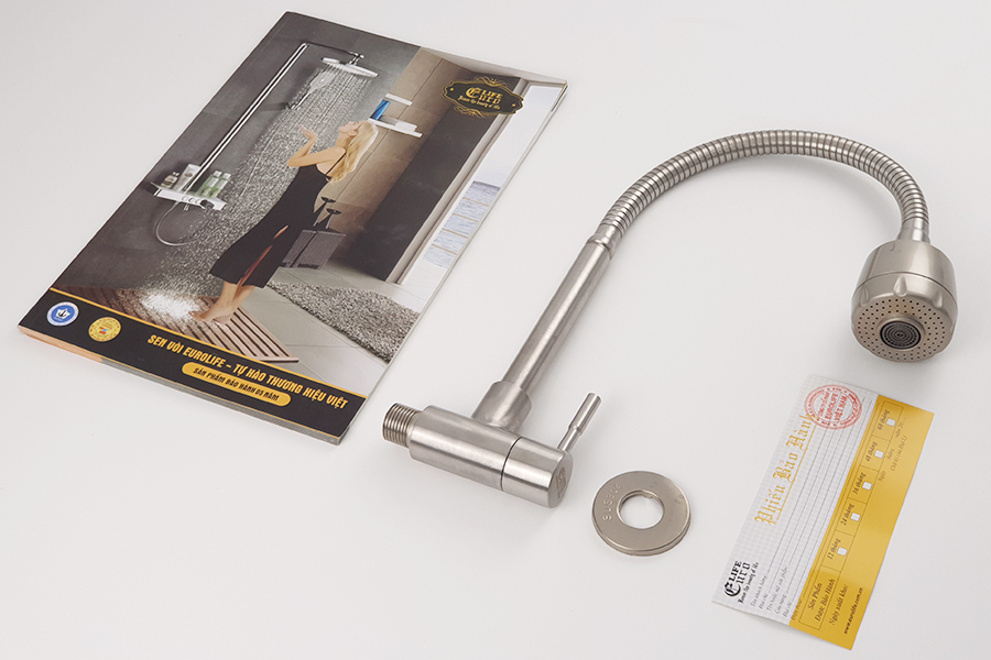 Vòi rửa chén lạnh Inox SUS 304 Eurolife được đúc trọng lực từ INOX SUS 304, không Chì (Pb) lên đảm bảo cho sức khỏe người sử dụng. Sản phẩm không rỉ sét trong thời gian dài sử dụng.