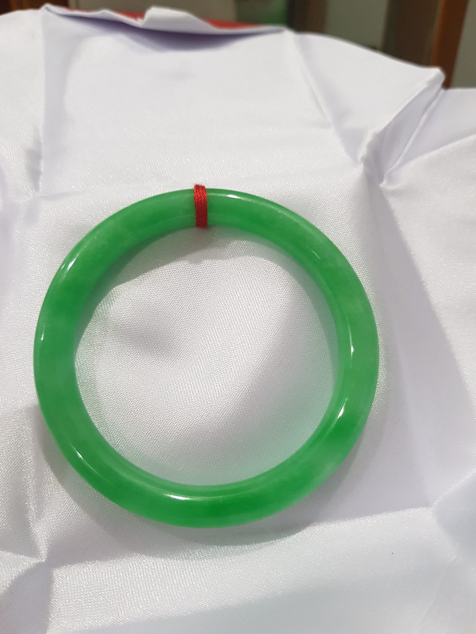 Vòng cẩm thạch Lý T 54mm x Dầy 7mm Màu Xanh lá tươi bóng mảnh khảnh đẹp hợp Nữ mệnh Mộc Hỏa 53kg - 62kg đeo ạ Sản phẩm này là tài sản cá nhân