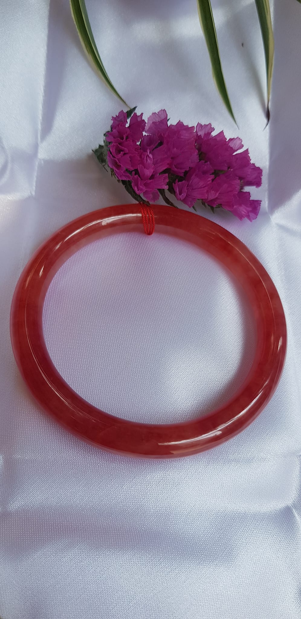 Vòng Cẩm Thạch Đỏ Đẹp A Ni 52mm x chột 7,8mm màu đỏ bông tươi sáng bóng đẹp nữ 52kg - 56kg đeo mệnh hỏa mệnh thổ đeo xuất sắc đẹp món quà tặng ý