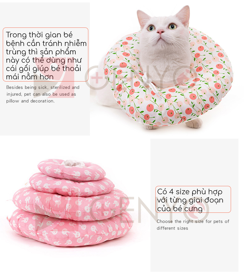 Vòng chống liếm cho mèo - Gối chống liếm cho mèo - Genyo pet care