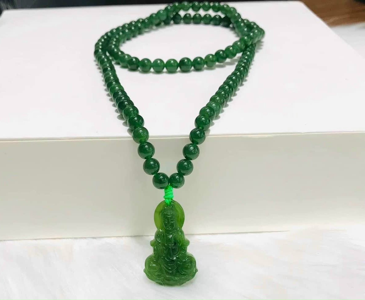 Ngọc bích đeo cổ 8 ly mix mặt mẹ quan âm #xuhuongyoutube #phongthuy #jewelry