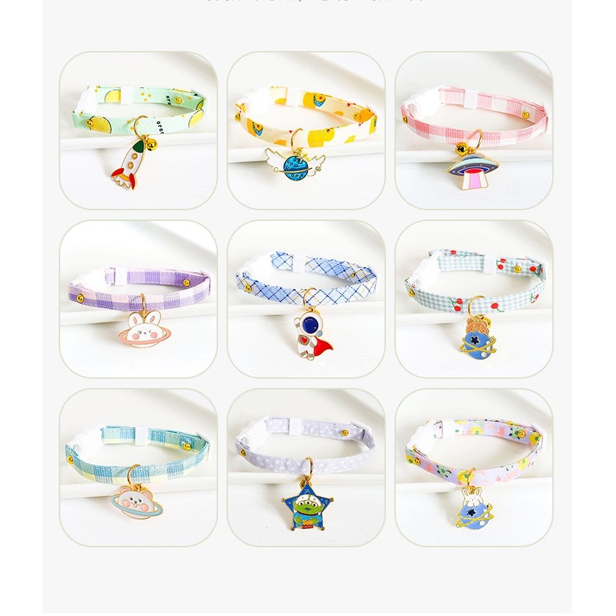 Vòng cổ lục lạc cho thú cưng cho mèo con bản 0.8cm in họa tiết dễ thương Vòng cổ cho mèo con có chất liệu vải dù êm ái, không làm thú cưng khó chịu
