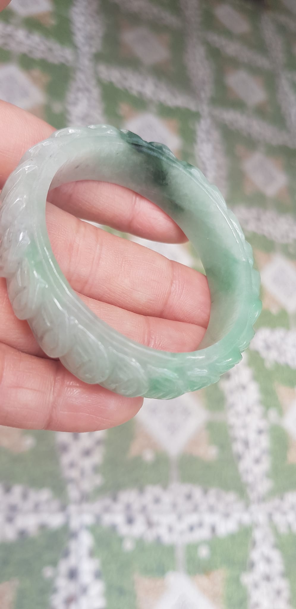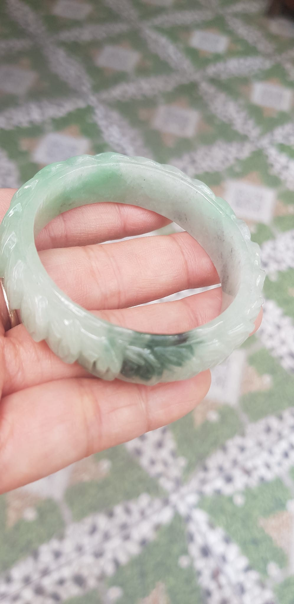 Vòng tay Nữ Đá Cẩm Thạch mới TR Lý 57 mm x cọng 7,5mm Màu Xanh lý tươi trắng 2 bên đều vòng đẹp Nữ 55kg - 64kg đeo đẹp món quà tặng chính mình