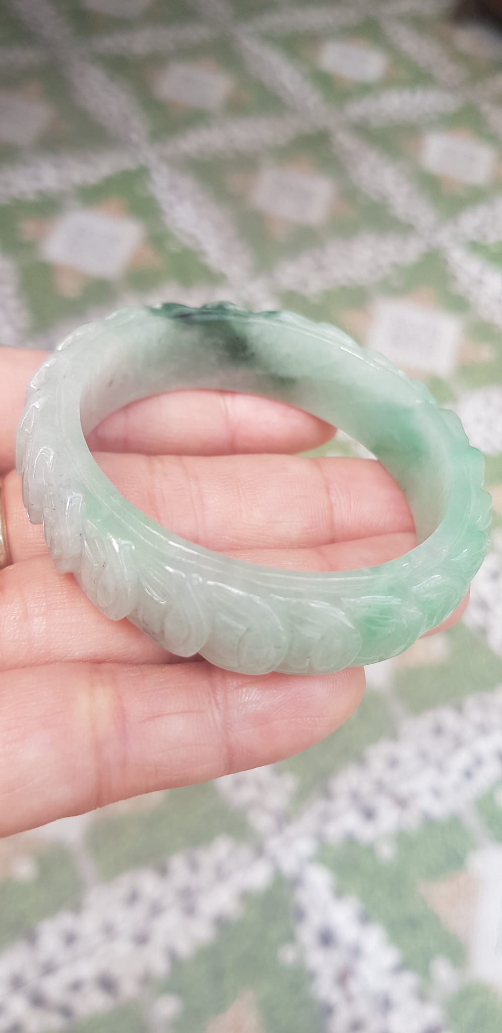 ✨Vòng tay đá ngọc Cẩm Thạch dãy Đồng Tiền Tự nhiên Size 48mm x cao 13mm x dầy 7mm Màu trắng bóng ngọc ngà điểm xanh nhẹ đẹp may mắn tài lộc Nữ mệnh kim mệnh thủy tay nhỏ 35kg - 48kg đeo ạ