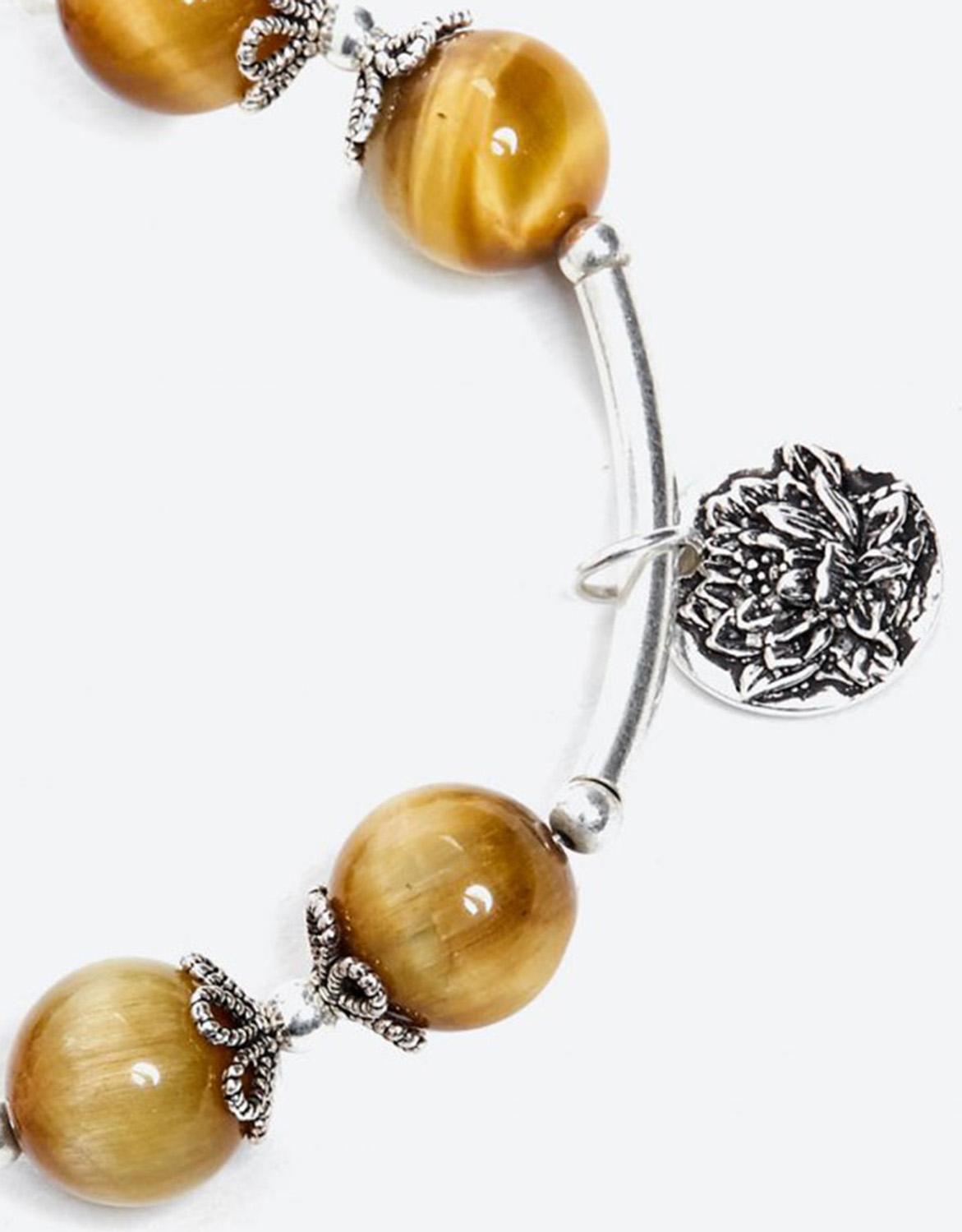 Vòng tay thiên nhiên đá mắt hổ vàng tâm phối charm bạc - Hợp mệnh kim, thổ | Ngọc Quý Gemstones |