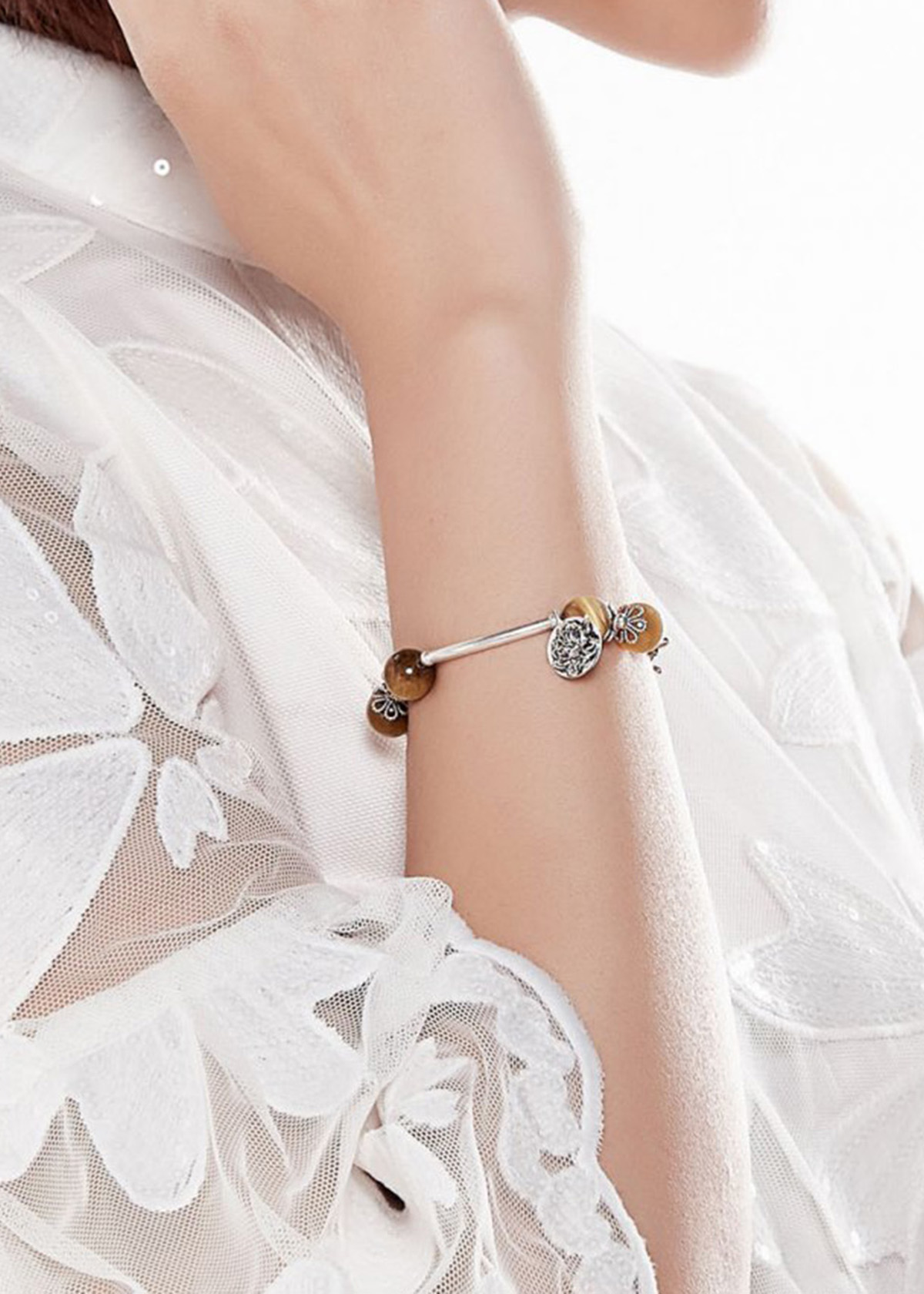 Vòng tay thắt dây hoa đá thiên nhiên phối charm bạc | Ngọc Quý Gemstones |