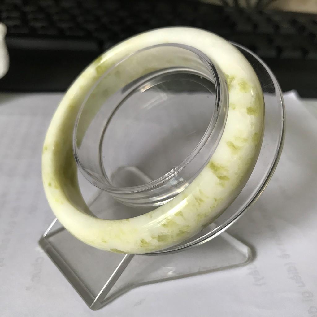 2. Màu sắc và kích thước: Bản hẹ, tức là bản dẹp. Màu trắng đốm ngọc vàng chanh 3. Size từ 5.1 đến 6.2 cm, chiều cao vòng từ 1.5 cm bạn đo tay theo