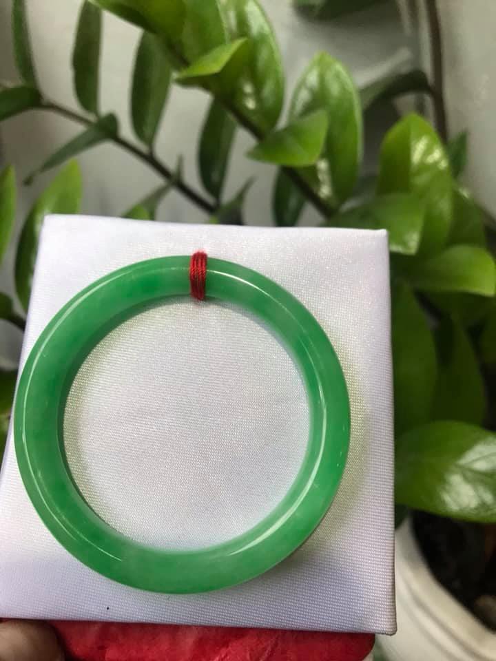 Vòng tay đá Cẩm Thạch mới TR Lý 51mm x cọng 6,2mm Màu Xanh lý 2 bên trắng đều đẹp nữ 50kg - 53kg đeo
