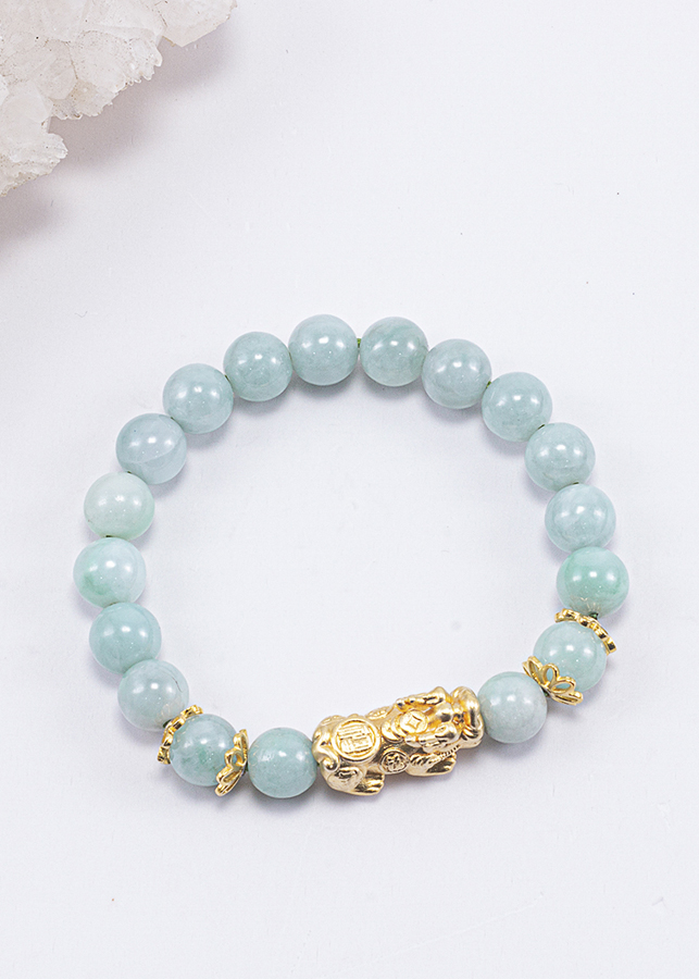 Mua tại TiktokVòng Tay Phong Thủy Nữ Đá Cẩm Thạch Phỉ Thúy Phối Charm Tỳ Hưu Mạ Vàng 24K (8mm) Mệnh Mộc, Hỏa Từ lâu người ta đã biết đến đá cẩm thạch giống như một sản phẩm vô cùng tuyệt vời hướng bạn đến với những điều tốt đẹp, may mắn trong cuộc sống. Ngoài ra, viên đá còn giúp duy trì sự bình yên và thanh thản trong tâm trí. Vòng Tay Phong Thủy Nữ Đá Cẩm Thạch Phỉ Thúy Phối Charm Tỳ Hưu Mạ Vàng 24K (8mm) Mệnh Mộc, Hỏa được làm từ đá cẩm thạch. Công dụng và ý nghĩa phong thủy của đá cẩm thạch: