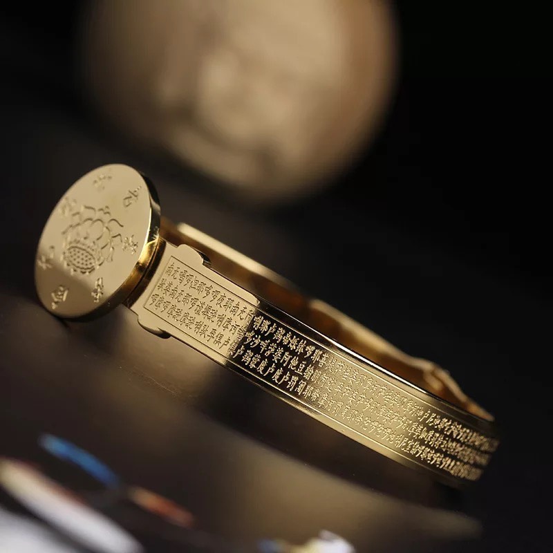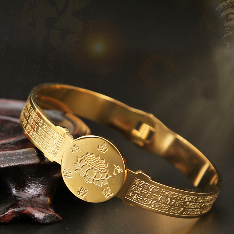 Vòng tay nam nữ titan khắc chú đại bi mix hoa sen phong thủy dạng tròn cao cấp sáng đẹp
