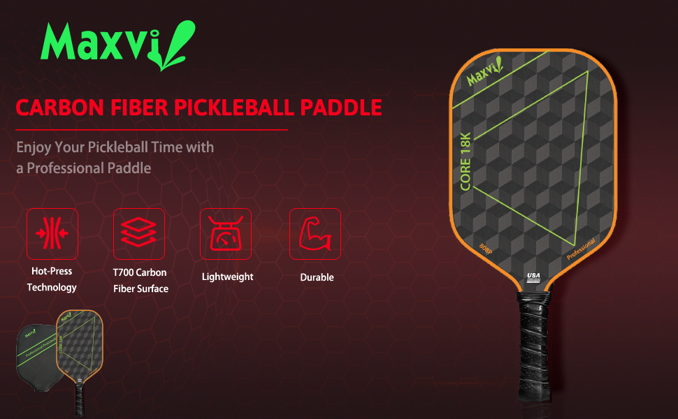 Vợt Pickleball MAXVI CORE 18K Lõi tổ ong Mặt vợt sần sợi 18K đan quả trám cho người chuyên nghiệp