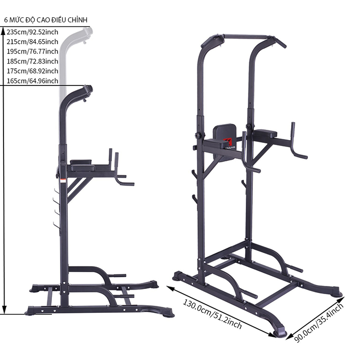 - Kích thước lắp đặt xà đơn xà kép T056: 140 x 90 cm, chiều cao điều chỉnh từ 165 – 225 cm