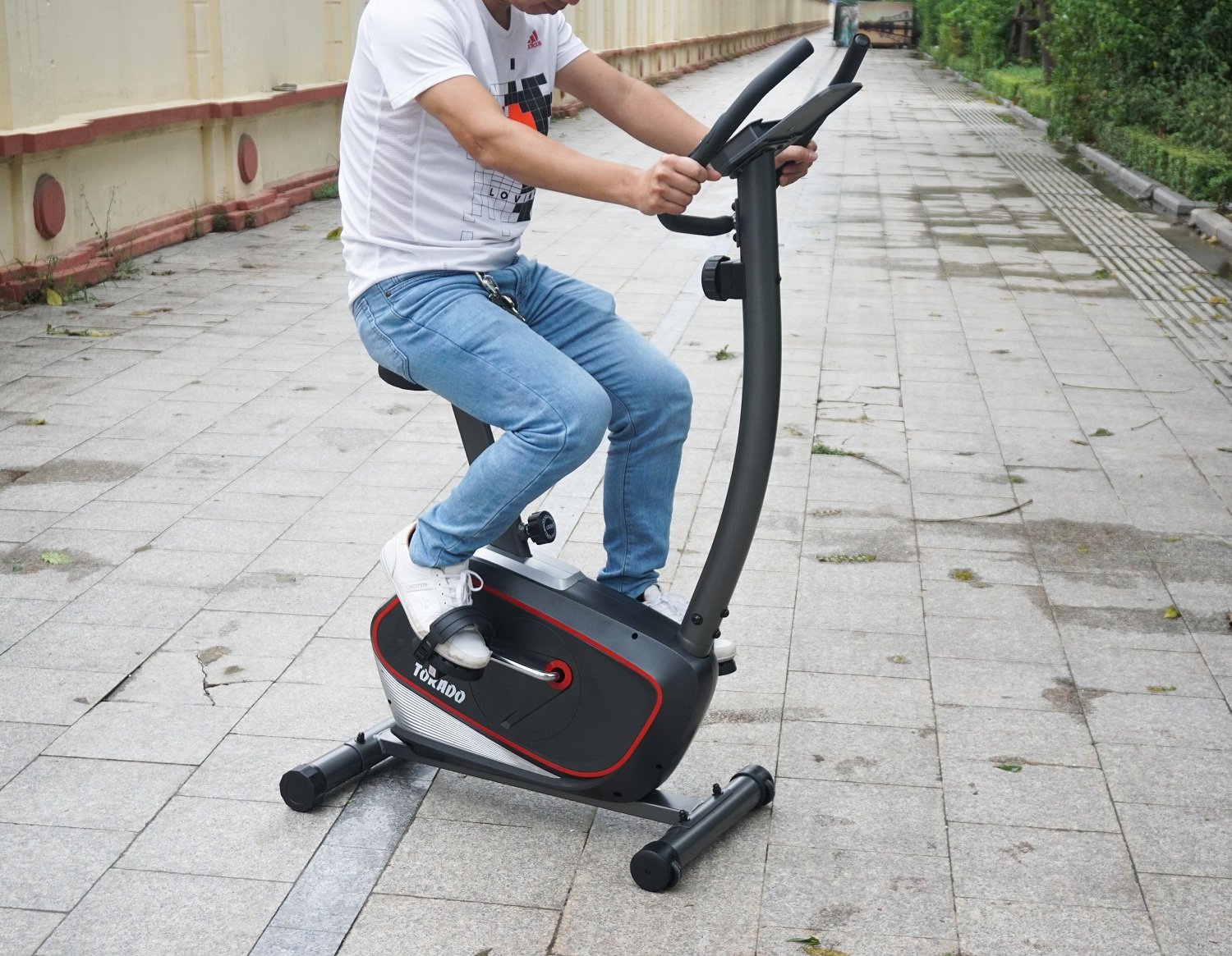 Xe đạp tập thể dục Tokado TK900 với thiết kế nhỏ gọn, chắc chắn, chuyển động cực êm bằng dây curoa hỗ trợ luyện tập các bài đạp xe tại nhà hiệu quả.