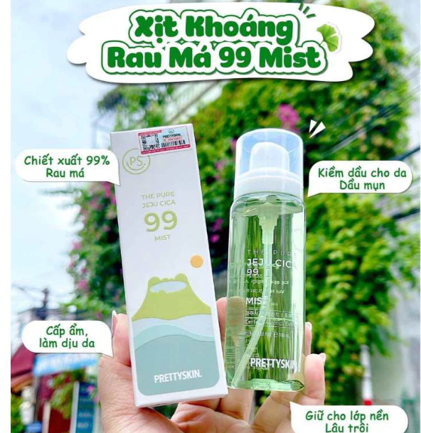 Mua tại TiktokXịt khoáng rau má Pretty Skin The Pure Jeju Cica 99 Mist làm dịu cấp ẩm cho da Xuất xứ: Hàn Quốc. Thương Hiệu: Prettyskin. Dung tích: 100ml. Phù hợp: Mọi loại da, đặc biệt da dầu, mụn CÔNG DỤNG VÀ THÀNH PHẦN