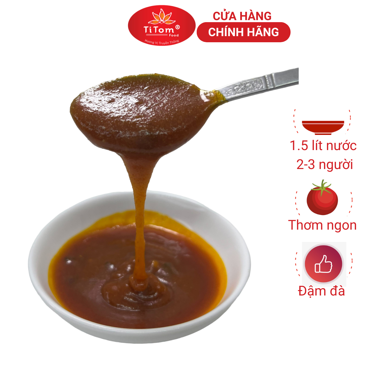 -Xốt bún riêuTitom là gia vị nấu bún riêu nêm sẵn hoàn chỉnh dùng nấu nước lèo bún riêu, bún riêu cua, canh bún cho bạn một nồi nước dùng bún riêu thơm ngon chuẩn vị, không cần nêm nếm.