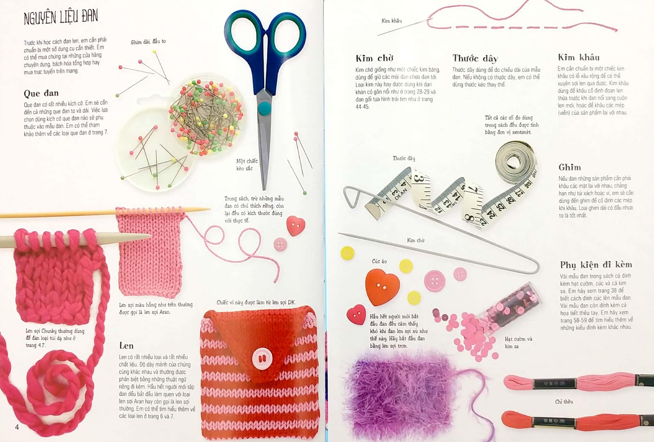 Cuốn sách sáng tạo đầy cảm hứng này thực sự sẽ là một cẩm nang rất hữu ích cho bất cứ ai muốn bắt đầu học cách đan những sản phẩm bằng len. Từng bước từng bước cụ thể trong sách sẽ hướng dẫn rõ ràng, chi tiết cho em cách đan các mũi cơ bản, cùng các kỹ thuật đan khác. Ngoài ra, việc chọn lựa que đan, loại len sao cho phù hợp với từng sản phẩm đan cũng được đề cập đến và giải thích hết sức cặn kẽ.
