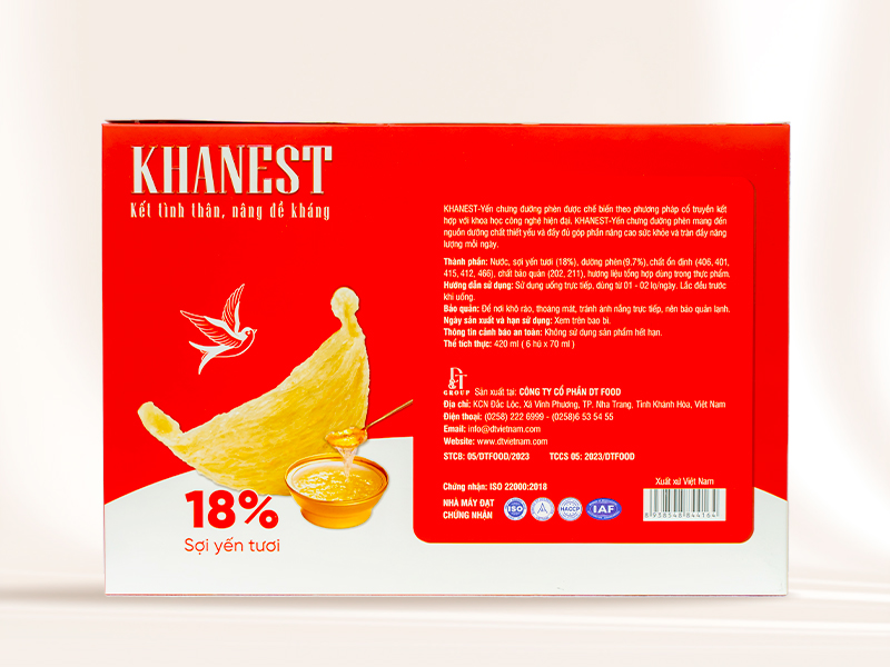 NƯỚC YẾN SÀO KHÁNH HÒA SANEST CÓ ĐƯỜNG - HÀM LƯỢNG YẾN BỔ SUNG 21% Nước Yến sào Khánh Hòa Sanest được sản xuất từ nguồn Yến sào thiên nhiên do Công ty trực tiếp
