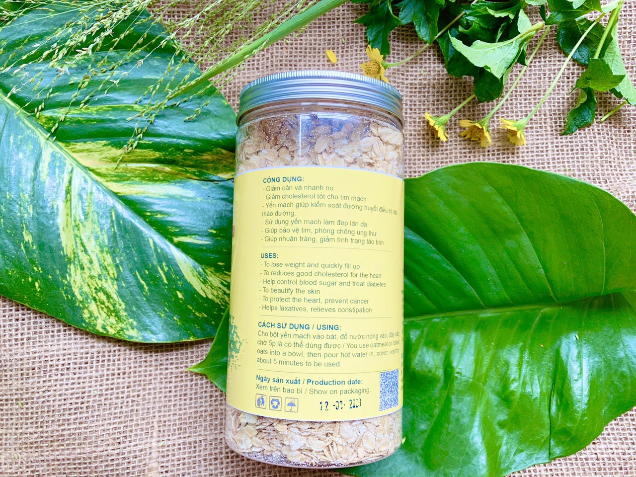 GIỚI THIỆU Yến mạch ăn kiêng GUfoods là loại ngũ cốc với hàm lượng chất xơ và giá trị dinh dưỡng vượt trội, bổ sung lý tưởng cho thực đơn ăn kiêng thường ngày. Sản phẩm đặc biệt phù hợp với người tập gym, tập thể thao, eat clean, hỗ trợ giảm cân và giàu lợi ích sức khoẻ. ĐẶC ĐIỂM NỔI BẬT ✓ Giàu chất xơ và dinh dưỡng tốt, nhiều lợi ích sức khoẻ từ yến mạch ✓ Đặc biệt phù hợp cho người tập gym - thể thao, ăn kiêng, thực dưỡng, eat clean ✓ Nguyên liệu sạch, nhập khẩu Úc ✓ Không phụ gia, không chất bảo quản THÀNH PHẦN 100% Yến mạch nguyên hạt cán mỏng. GIÁ TRỊ DINH DƯỠNG Yến mạch cung cấp nhiều chất xơ, protein, vitamin, các hợp chất chống oxy hoá và các khoáng chất có lợi cho sức khỏe. LỢI ÍCH SỨC KHỎE 1. Hỗ trợ quá trình ăn kiêng - Chất xơ trong yến mạch giúp tiêu hóa lâu hơn và duy trì cảm giác no trong một khoảng thời gian dài, hạn chế cảm giác thèm ăn. 2) Tốt cho bệnh nhân tiểu đường type 2 - Bệnh tiểu đường type 2 được đặc trưng bởi sự điều chỉnh bất thường của lượng đường trong máu, thường là do giảm độ nhạy hormone insulin. Beta glucan trong yến mạch có tác dụng giúp kiểm soát lượng đường trong máu bằng cách điều chỉnh đáp ứng glucose và insulin sau bữa ăn 3) Tốt cho hệ tiêu hoá - Lượng chất xơ dồi dào có trong yến mạch giúp điều chỉnh chức năng ruột, giảm các triệu chứng táo bón và viêm đại tràng. 4) Tốt cho tim mạch - Các nghiên cứu đã chứng minh rằng yến mạch có thể làm giảm mức cholesterol, qua đó giúp hỗ trợ tích cực cho sức khoẻ tim mạch. HƯỚNG DẪN SỬ DỤNG Làm chín và ăn kèm sữa chua / sữa tươi; nấu thành cháo / súp; hoặc dùng làm nguyên liệu chế biến granola, ngũ cốc, các loại bánh. HƯỚNG DẪN BẢO QUẢN Bảo quản nơi khô mát, tránh ánh nắng trực tiếp. KHỐI LƯỢNG TỊNH