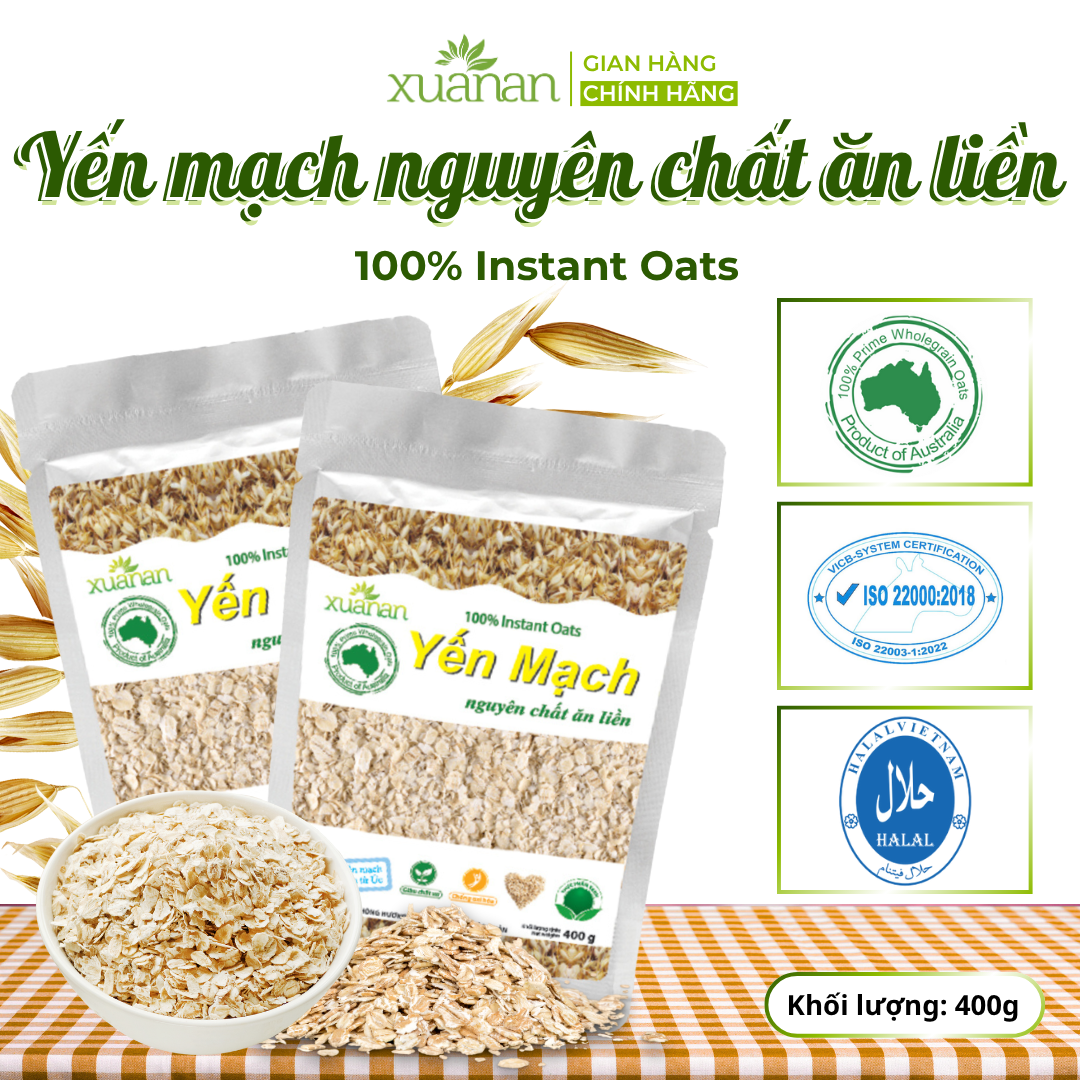 Yến mạch là loại ngũ cốc giàu chất xơ, giàu đạm, vitamin và dưỡng chất tự nhiên. Yến mạch nguyên chất Xuân An (Instant Oats) 100% được nhập khẩu từ ÚC.