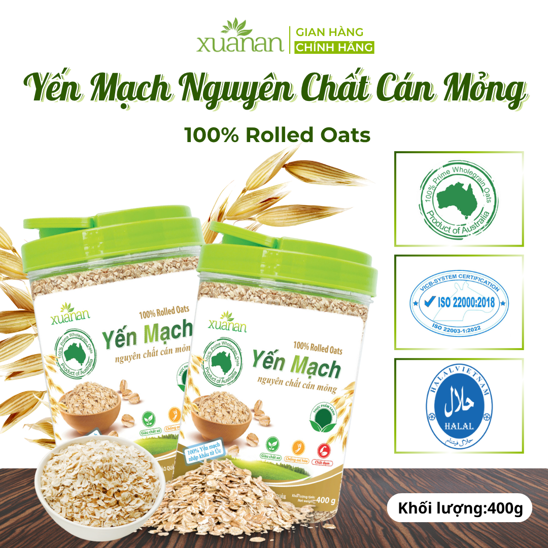 Yến mạch nguyên chất cán mỏng Xuân An là sản phẩm yến mạch chất lượng cao, được nhập khẩu trực tiếp từ Úc, nơi nổi tiếng với nguồn yến mạch tự nhiên, giàu dinh dưỡng.