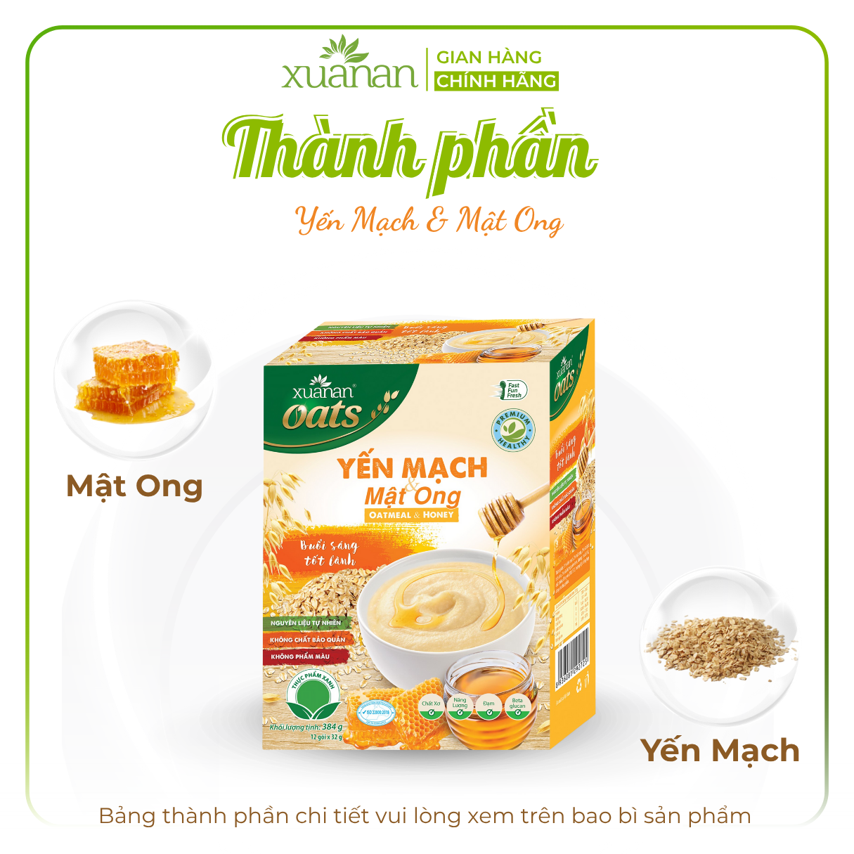 ✨Yến Mạch Và Mật Ong Xuân An Hộp 384G {32g*12 gói}